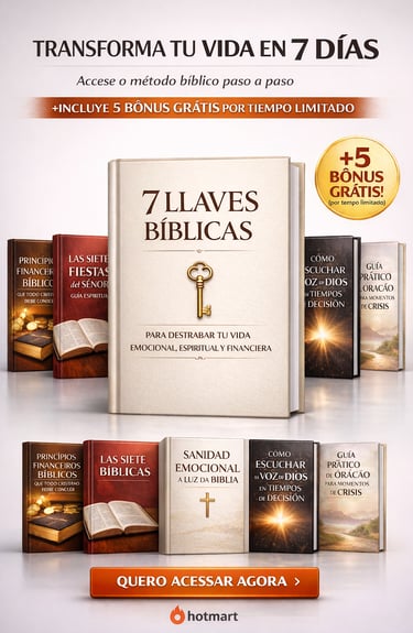 Descubre las 7 Claves Bíblicas que han ayudado a miles de personas a romper ciclos de escasez, sanar heridas emocionales y vivir el propósito de Dios, aplicando principios claros y prácticos de la Biblia.